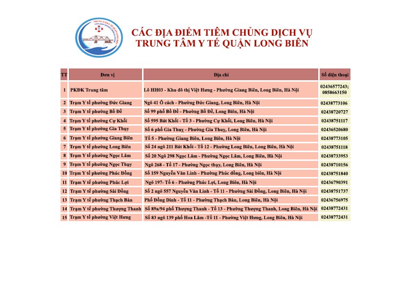 TRUNG TÂM Y TẾ QUẬN LONG BIÊN XIN TRÂN TRỌNG THÔNG BÁO PHÒNG TIÊM CHỦNG DỊCH VỤ TẠI PHÒNG KHÁM ĐA KHOA NGỌC LÂM