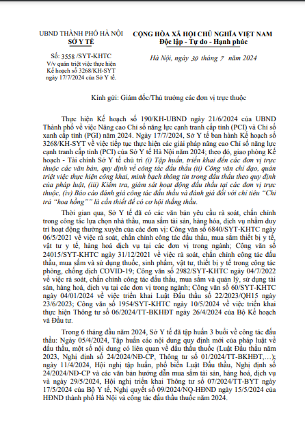 VỀ VIỆC QUÁN TRIỆT VIỆC THỰC HIỆN KẾ HOẠCH SỐ 3268/KH-SYT NGÀY 17/7/2024 CỦA SỞ Y TẾ