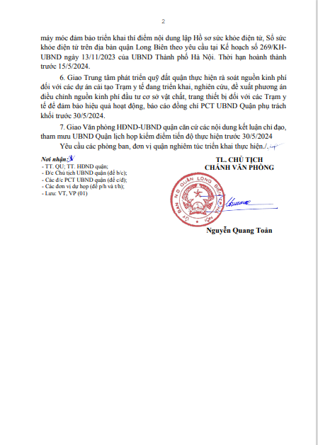 KẾT LUẬN CỦA UBND QUẬN TẠI BUỔI HỌP BÁO CÁO TIẾN ĐỘ TRIỂN KHAI KẾ HOẠCH THÍ ĐIỂM LẬP SỔ SỨC KHOẺ ĐIỆN TỬ, HỒ SƠ SỨC KHOẺ ĐIỆN TỬ TRÊN ĐỊA BÀN QUẬN