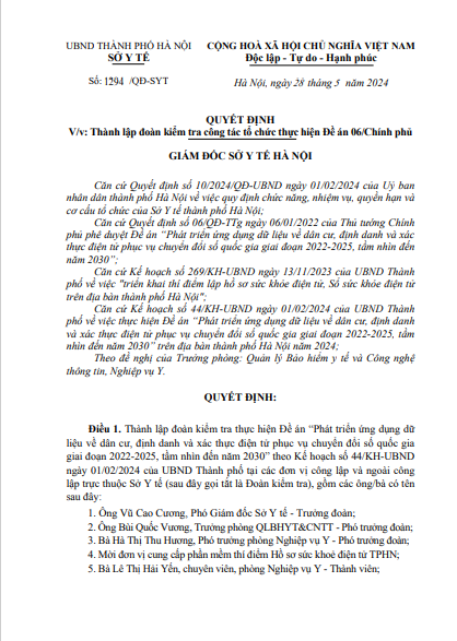 QUYẾT ĐỊNH VỀ VIỆC THÀNH LẬP ĐOÀN KIỂM TRA CÔNG TÁC TỔ CHỨC THỰC HIỆN ĐỀ ÁN 06/CHÍNH PHỦ