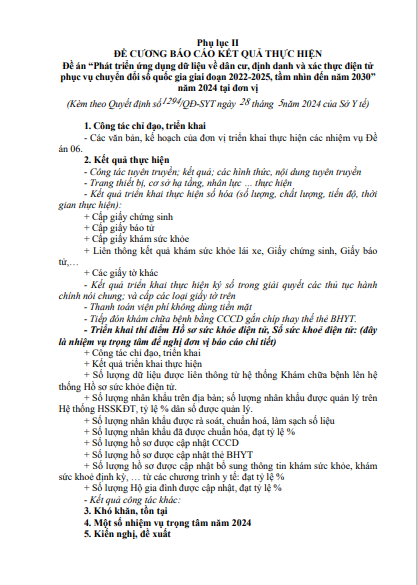 Báo cáo tiến độ triển khai thí điểm lập Hồ sơ sức khoẻ điện tử, Sổ sức khoẻ điện tử trên địa bàn quận Long Biên