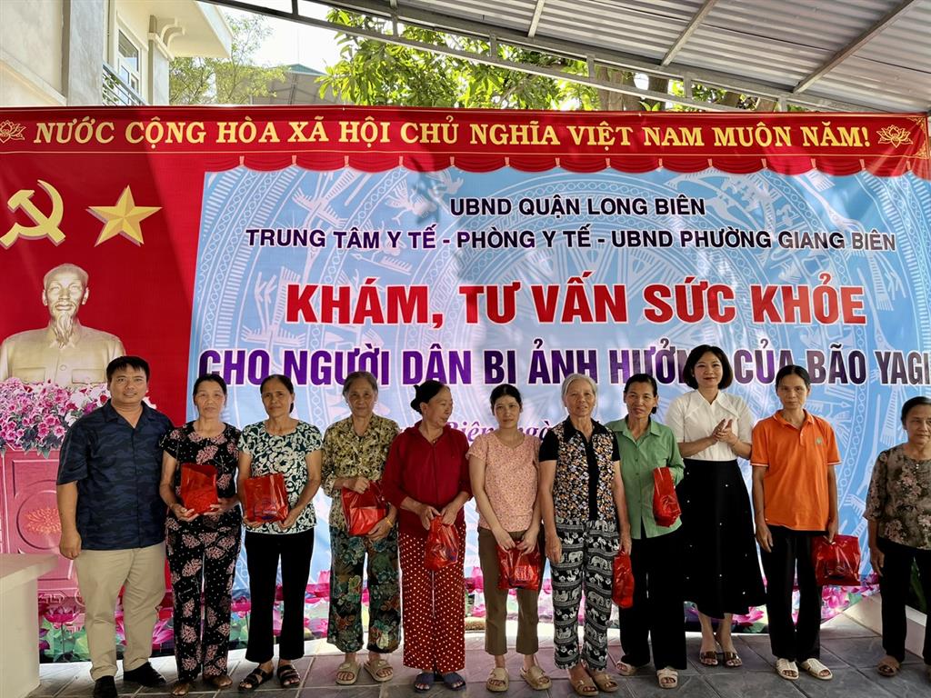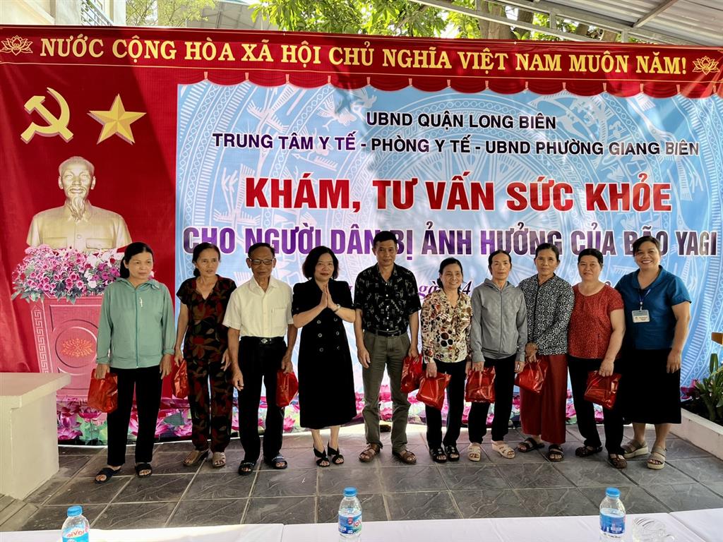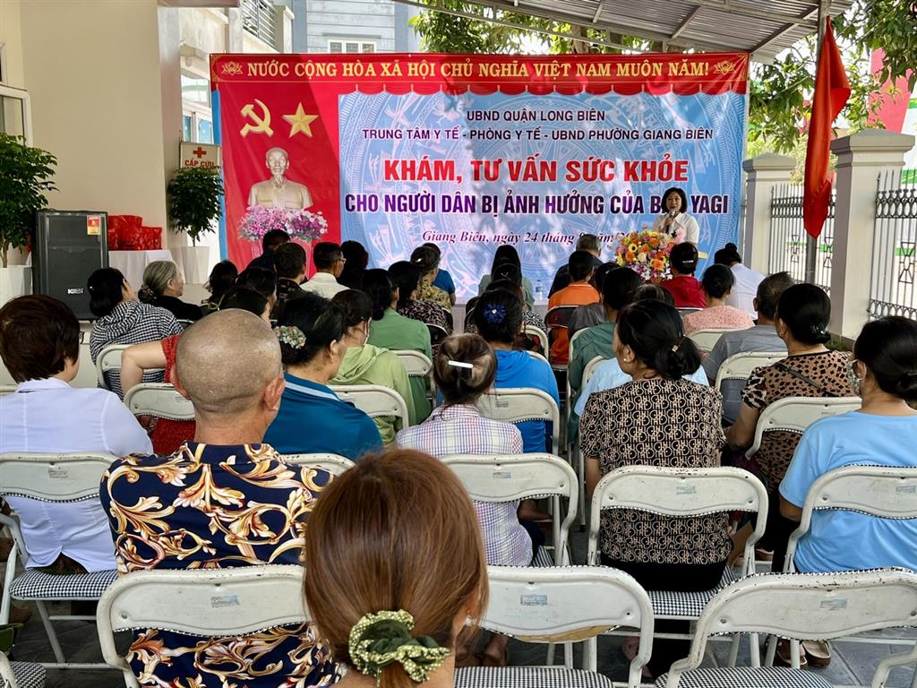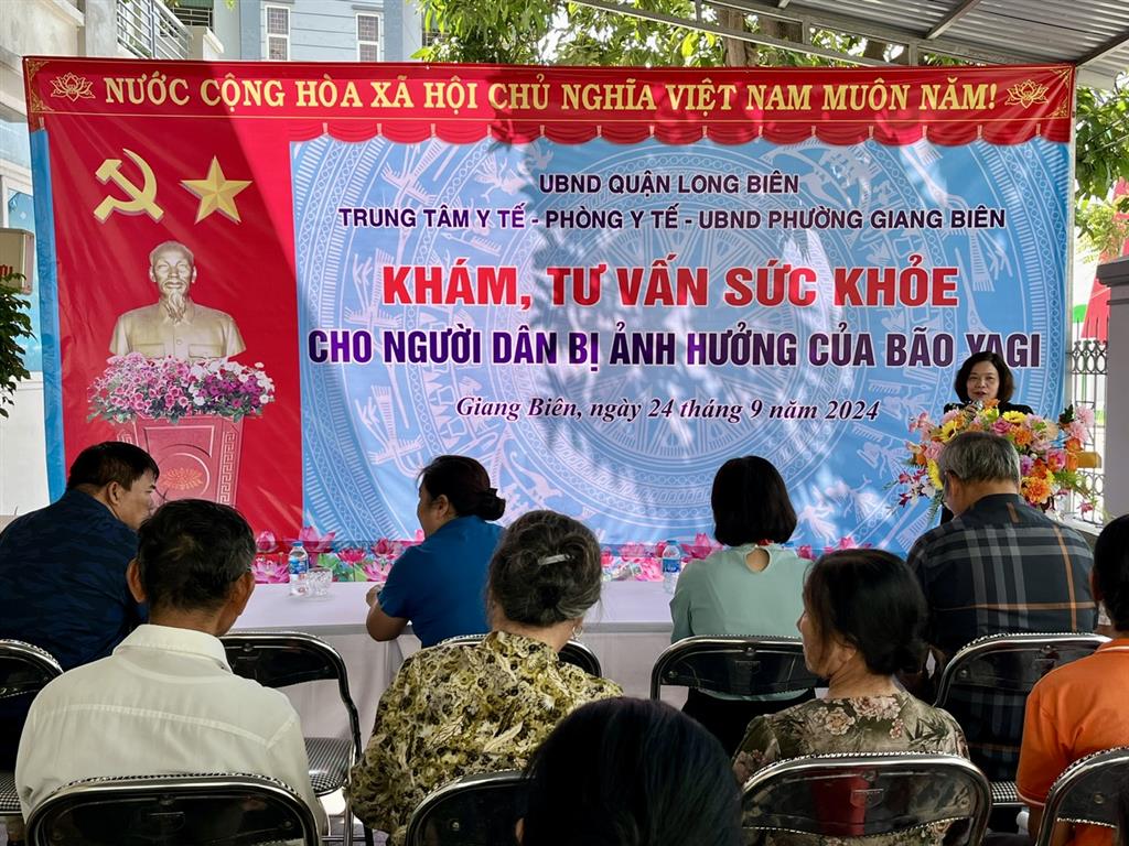 Phát biểu khai mạc tại buổi khám, TS. Đỗ Thị Thu Hà cho hay, trong những ngày qua bão YAGI đã gây ra nhiều thiệt hại về tài sản, ảnh hưởng đến đời sống sinh hoạt và sức khoẻ của người dân. Sau bão, thực hiện chỉ đạo của Sở Y tế Hà Nội và Uỷ ban nhân dân quận Long Biên, Trung tâm Y tế quận đã phối hợp với các phường tổ chức vệ sinh môi trường, xử lý nguồn nước; tiến hành phun khử khuẩn tại những khu vực nguy cơ cao; hướng dẫn người dân thực hiện các biện pháp phòng chống một số dịch bệnh thường gặp sau bão lũ... đảm bảo không để dịch bệnh xảy ra.