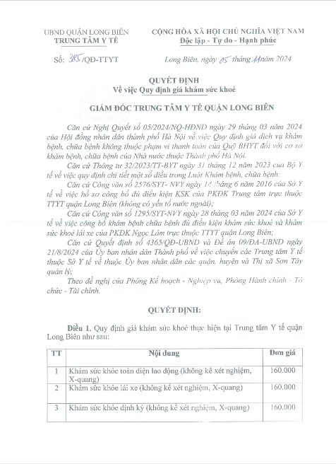 QUYẾT ĐỊNH GIÁ KHÁM SỨC KHOẺ