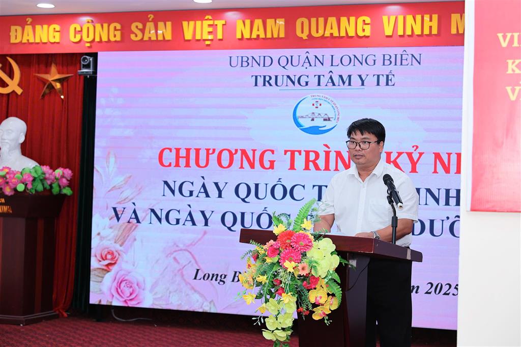 Phát biểu khai mạc tại lễ mít tinh, ThS.BS Nguyễn Khắc Thuý – Phó Giám đốc TTYT gửi những lời chúc tốt đẹp nhất đến toàn thể cán bộ điều dưỡng, nữ hộ sinh, kỹ thuật viên của Trung tâm. Hội nghị hôm nay là một sự kiện có ý nghĩa thiết thực nhằm tôn vinh những đóng góp thầm lặng nhưng vô cùng quan trọng của đội ngũ điều dưỡng, hộ sinh và kỹ thuật viên của Trung tâm. Những năm qua, đội ngũ điều dưỡng, nữ hộ sinh, kỹ thuật viên của Trung tâm Y tế quận Long Biên đã không ngừng trưởng thành, phát triển về cả số lượng và trình độ chuyên môn nghiệp vụ, đóng góp tích cực vào thành tựu chung trong công tác chăm sóc sức khỏe nhân dân trên địa bàn quận.