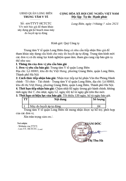 MỜI BÁO GIÁ ĐỂ THAM KHẢO XÂY DỰNG GIÁ KẾ HOẠCH MUA MÁY ĐO HUYẾT ÁP TỰ ĐỘNG
