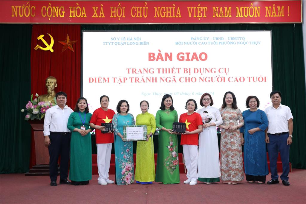 Trung tâm Y tế quận Long Biên bàn giao trang thiết bị dụng cụ cho Điểm tập tránh ngã cho người cao tuổi phường Ngọc Thụy