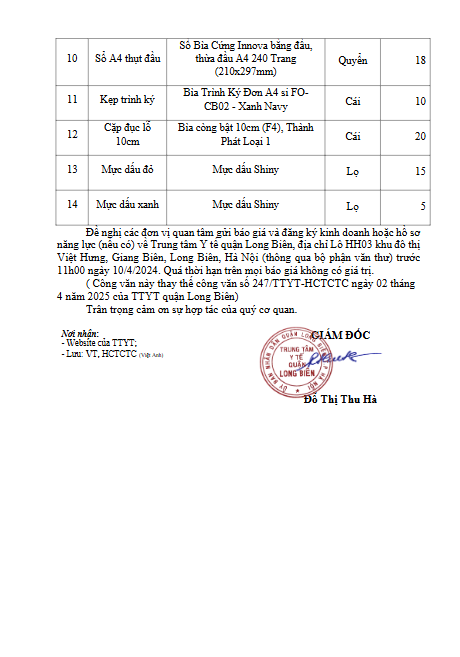 ĐỀ NGHỊ BÁO GIÁ MUA VĂN PHÒNG PHẨM PHỤC VỤ CÔNG TÁC KHỐI HÀNH CHÍNH NĂM 2025